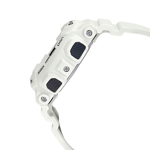 - Matte White Resin 2-Piece Strap with silver metal buckle